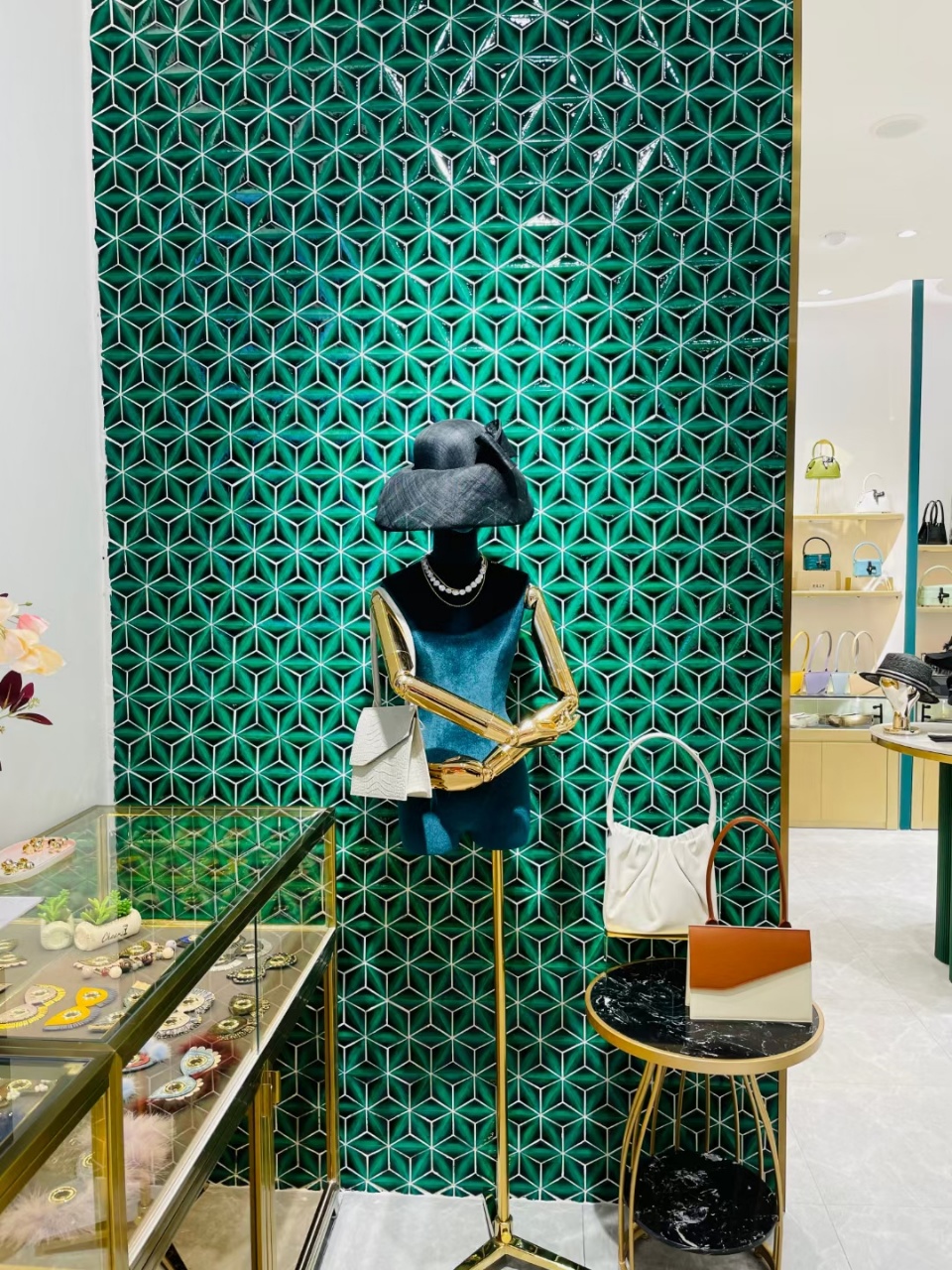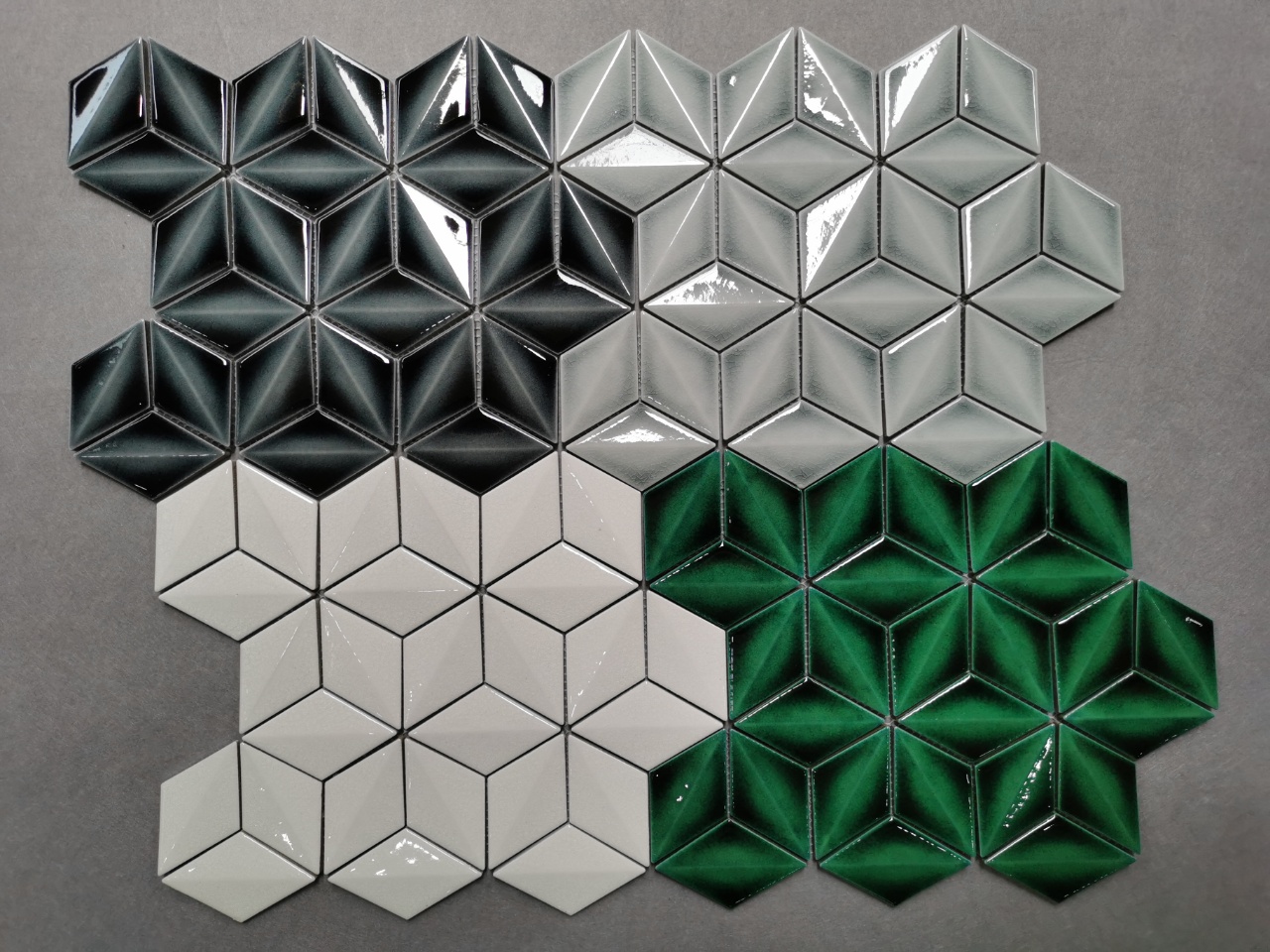 Step into a world where ceramic craftsmanship meets architectural innovation - introducing our Emerald 3D Geometric Ceramic Mosaic, a design marvel that transforms walls and surfaces into immersive art installations.