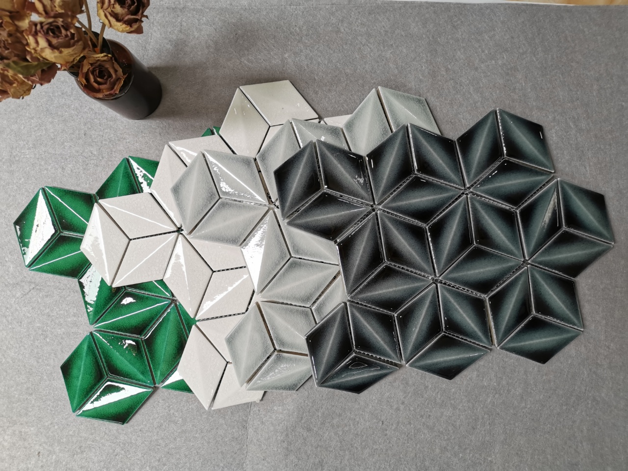 Engineered for durability, our ceramic formula resists stains, moisture, and wear, making it as practical as it is beautiful. Embrace the fusion of art and function - let this emerald gem redefine your space with timeless elegance and modern edge. Discover how 3D ceramic mosaics are revolutionizing interior design, one sculpted tile at a time.